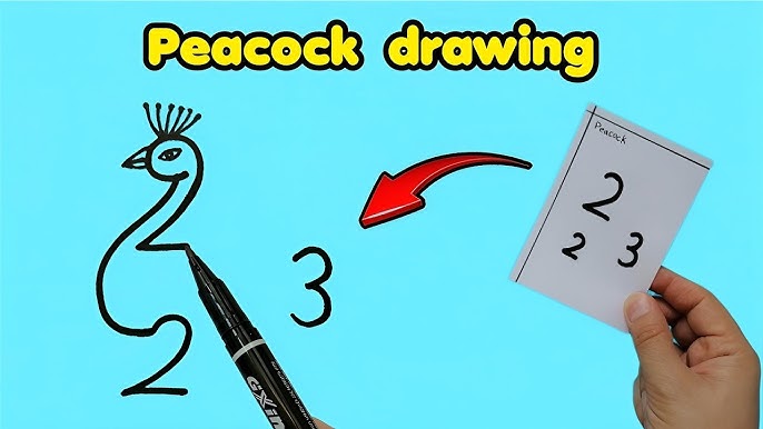 How To Draw Peacock With Number 223 How To Draw A Peacock Step By Step Peacock Drawing Easy Youtube